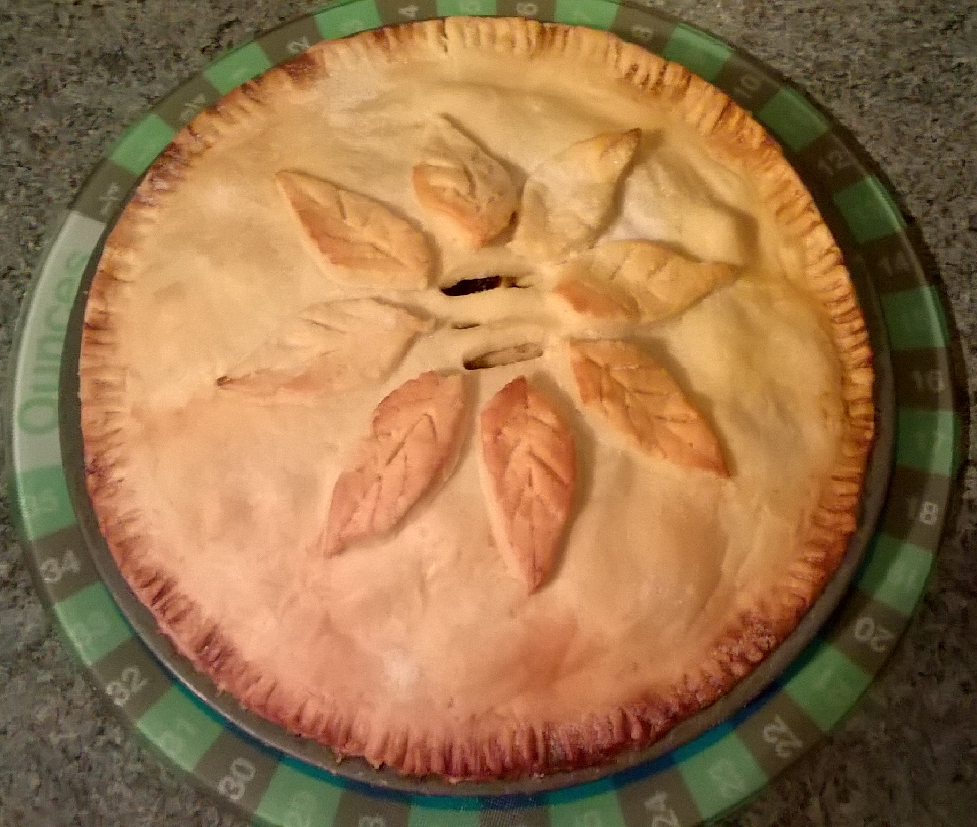 Add the apple mixture to the pie dish, brush the edges of the pastry with the egg then fit the pastry lid. Crimp the edges of the pastry with your fingers or a fork to seal. Make four small slits in the top of the tart to allow the steam to escape while cooking.
