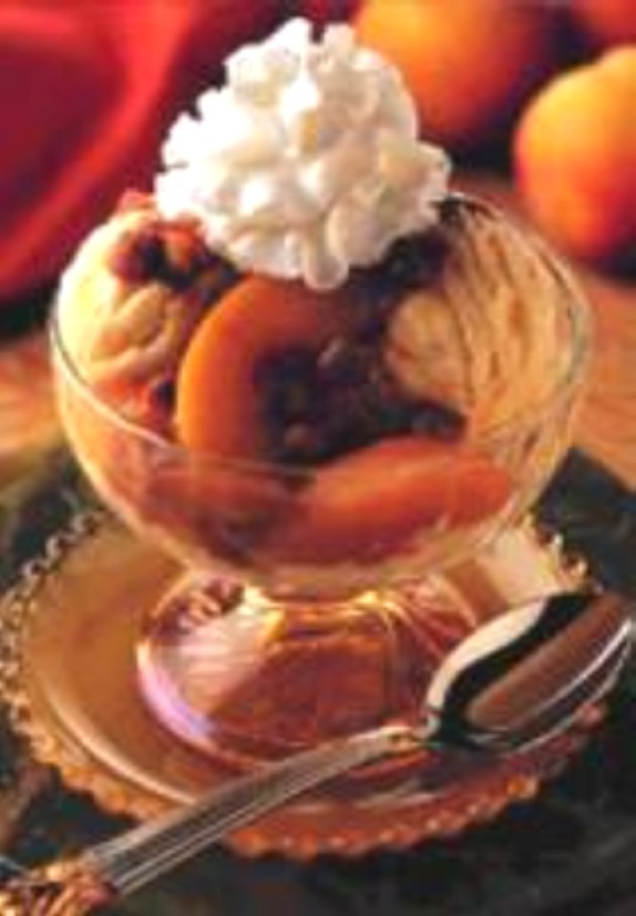 In a large saucepan, heat cranberry juice cocktail and brown sugar to boiling; add peaches. Return to boiling. Reduce heat; cover and