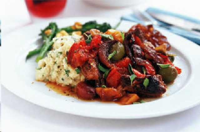 Serve the pasta with the casserole which may be garnished with chopped parsley