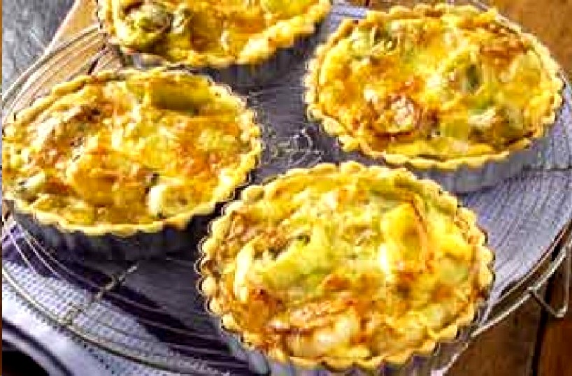 Reduce the oven temperature to 180°C Gas mark 6, Divide the leeks between the flan cases, scatter over the Stilton, then divide the cream mixture between them. Sprinkle over the Parmesan and bake for 15-20 minutes or the filling is set and golden.